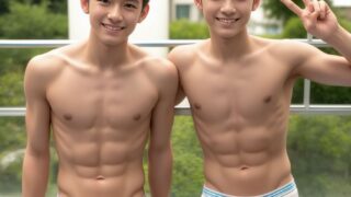イケメンたちのもっこり川遊び