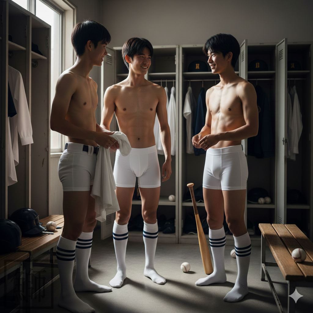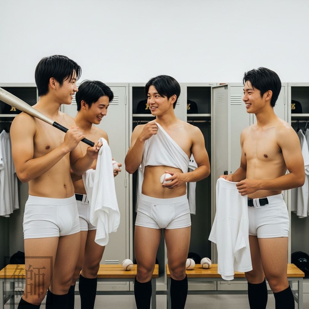 野球部の部室② この記事に掲載されているすべての画像はAIで生成された画像であり、18歳以上を想定した架空の存在です。実在の人物とは一切関わりありません。 AIイケメン X Facebook はてブ Pocket LINE コピー 2025.12.06 AIイケメン フォトリアルボクサーブリーフ野球ユニ