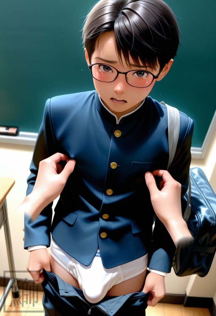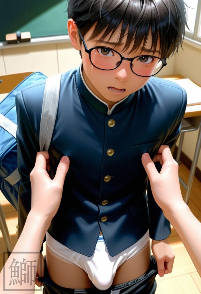 新入生脱がせてみた📷️ この記事に掲載されているすべての画像はAIで生成された画像であり、18歳以上を想定した架空の存在です。実在の人物とは一切関わりありません。 AIイケメン X Facebook はてブ Pocket LINE コピー 2025.12.17 AIイケメン AIイラストセミフォトリアルメガネ学ラン白ブリーフ