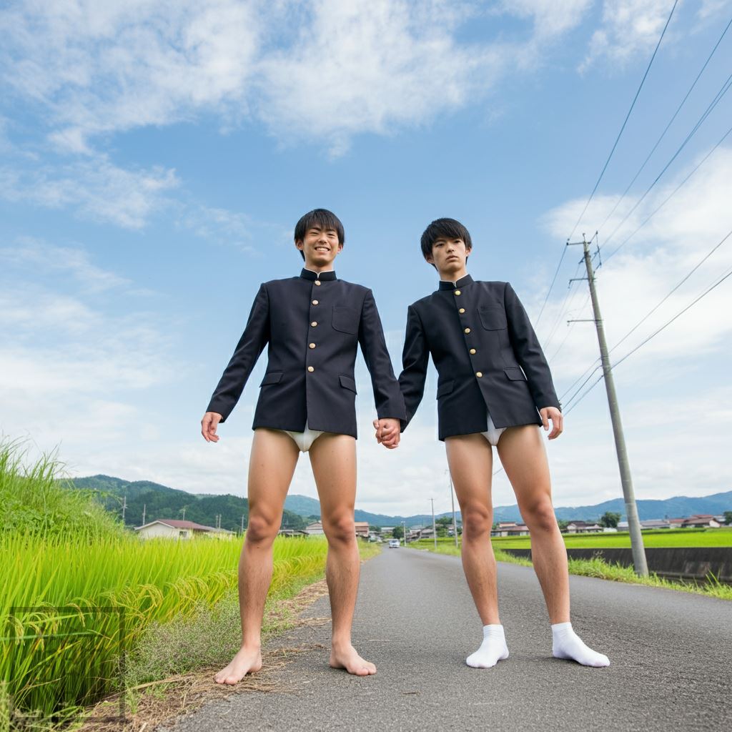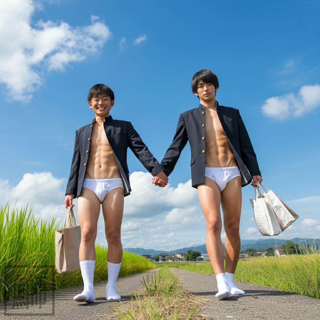 学ランと白ブリーフで手繋ぎ帰宅