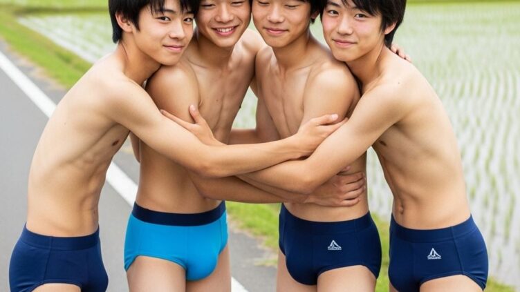 水泳部更衣室を覗いてみよう!美しい競パンと腋のAIイケメンたち