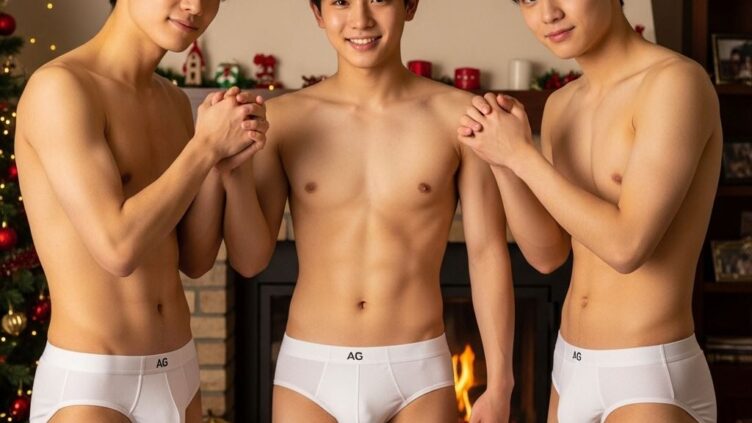 新春は友達みんなで仲良く白ブリーフのお買い物