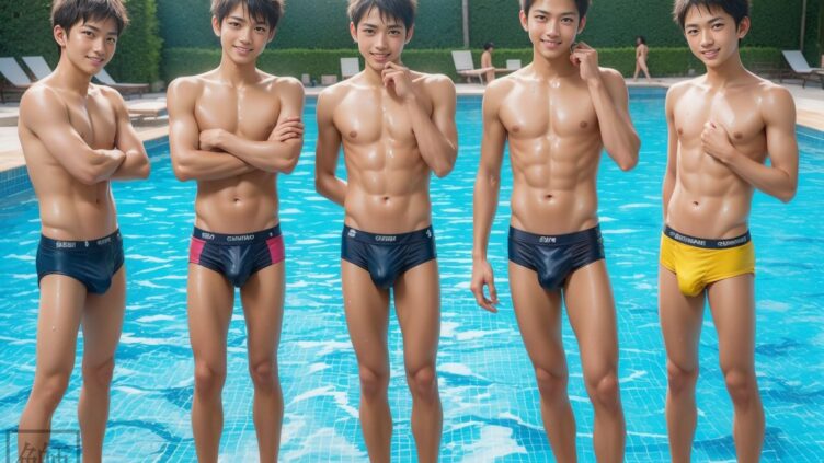 セクシーなマンキニ着用のAIイケメンたち